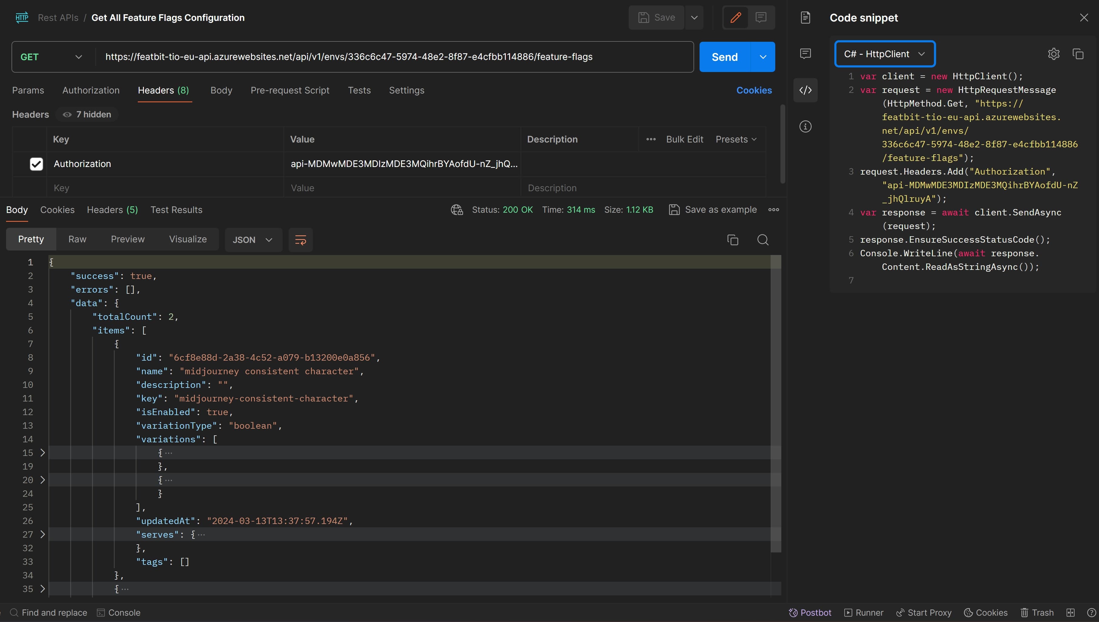 var currentEnvFeatureFlags = await GetEnvFeatureFlagsAsync(param.CurrentEnvironmentId, param.AccessToken);