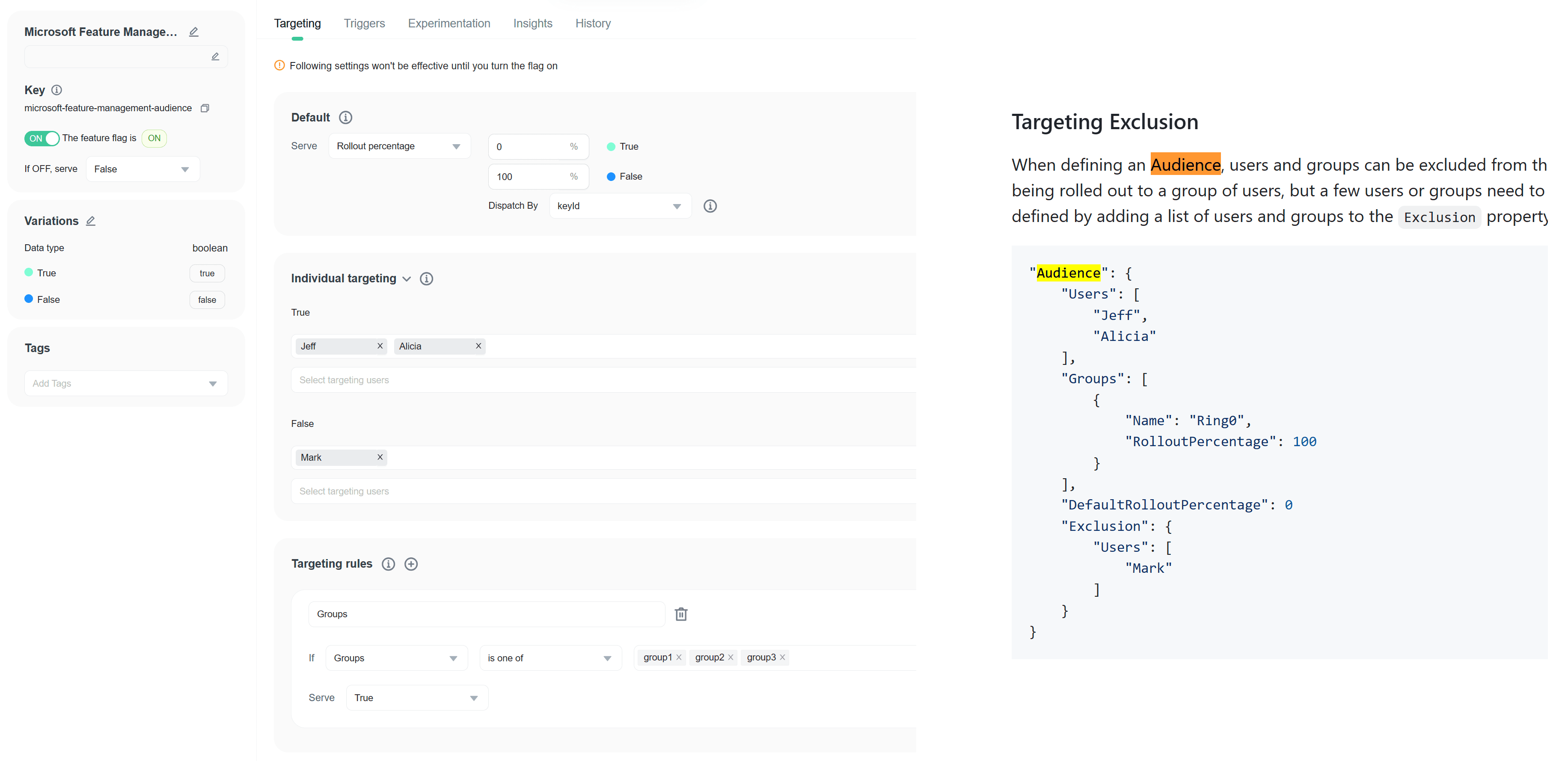- FeatBit can have multiple variants for a feature flag, while Microsoft.FeatureManagement only supports boolean values.